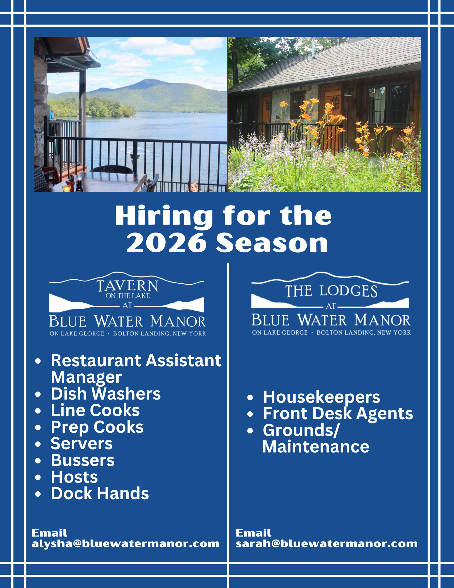 BWM is hiring staff for all different parts of our properties!