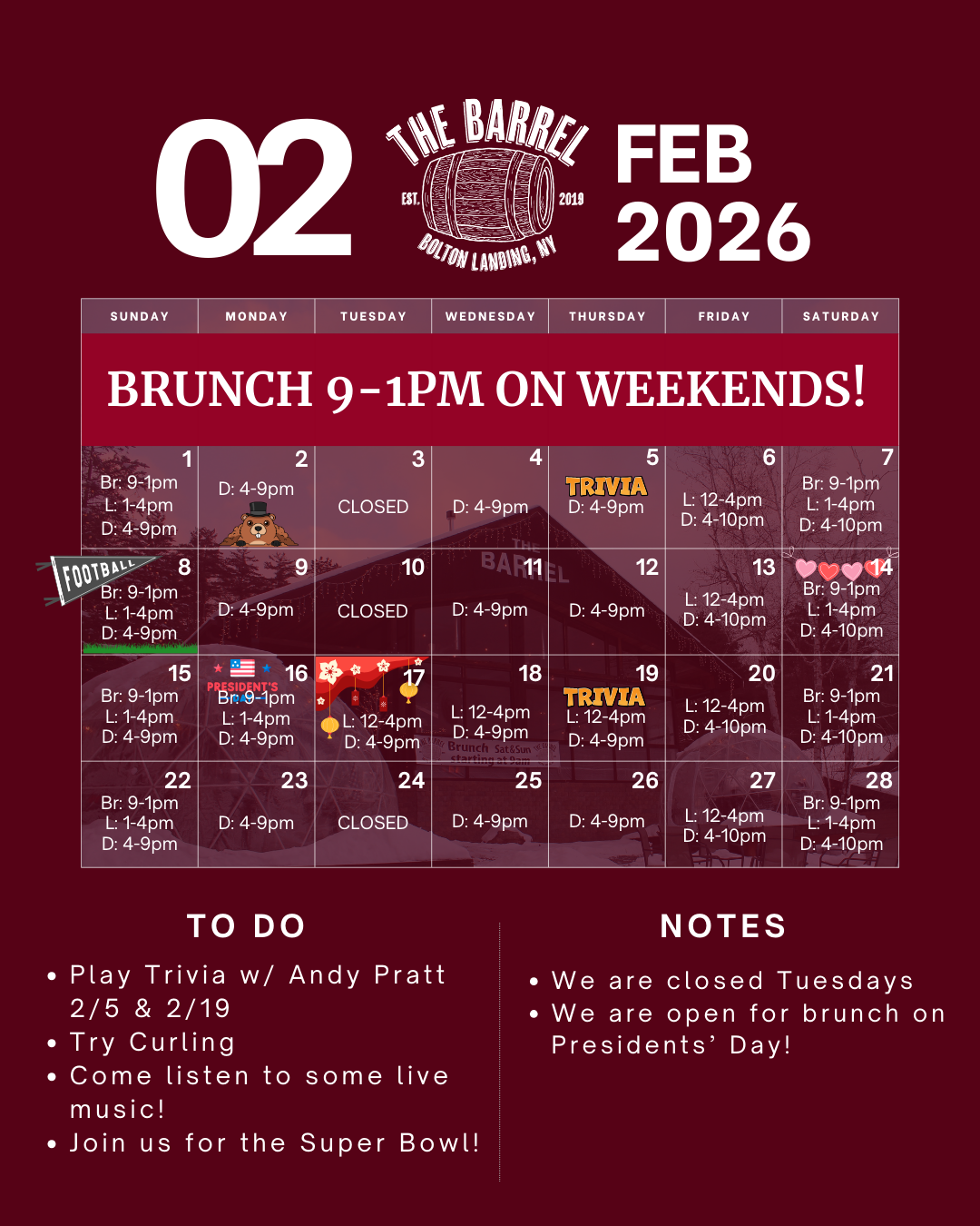 The Barrel February Hours